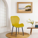 Scaunele de living tapițate cu catifea și cu picioare metalice negre sunt o alegere sofisticată și modernă pentru amenajarea spațiilor de locuit. Aceste scaune combină confortul materialelor de calitate cu un design minimalist și elegant, potrivindu-se perfect în interioarele contemporane. Catifeaua oferă o senzație luxoasă și plăcută la atingere, în timp ce picioarele metalice negre adaugă un contrast stilistic puternic și o structură solidă.